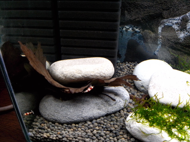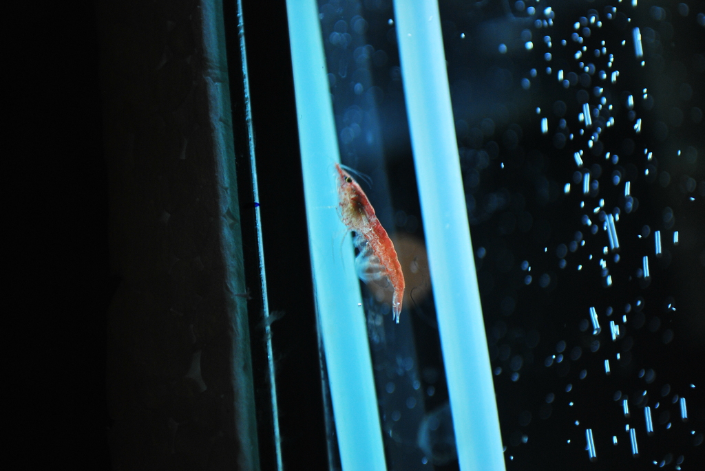 Най-накрая и аз стартирах скаридарника, но понеже още не е много за показване, пускам само 1 снимка на един от обитателите как си похапва необезпокояван :D