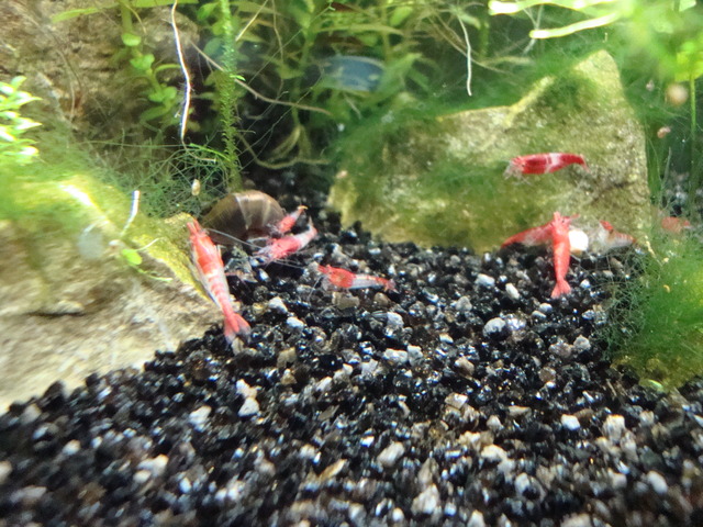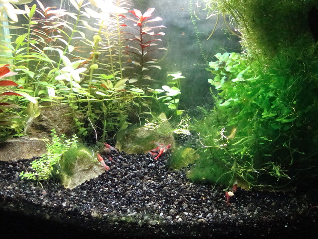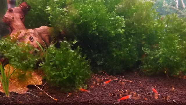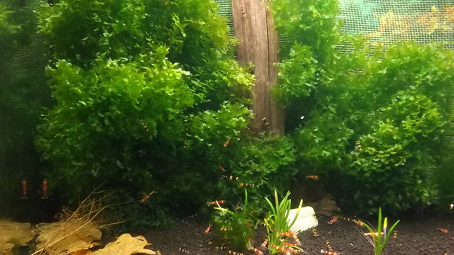 Прекрасен скаридарник.Страшен цвят на буболечката. Със същия субстрат съм, но при мен хемиантоса не можа да се развие. Дай малко инфо-твърдаст на водата, торове , СO2, осветление.