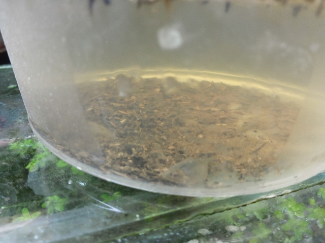 Пак казвам нишковидните водорасли са добър вариант  - хем дават кислород, хем има по тях едноклетъчни. Това го няма и по сайтовете. Проблема е че ако са повече могат да превземат цялото легенче. Кат пораснат триопсите ги правят на нищо.Те обичат и да с крият от лампата по тях.Трябва си усет за количество и качество.