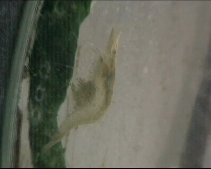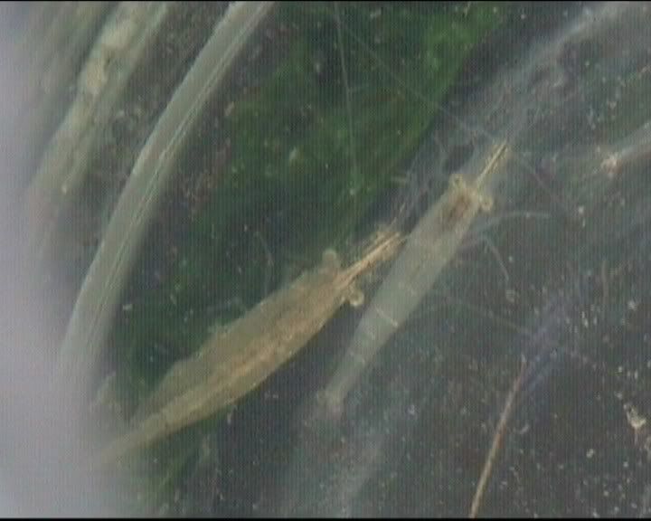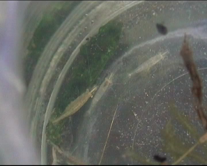 А скаридите Живеят близко до брега вече казах че са уловени в р.Тахо Испания. Достигат до 4-4.5 см.От 2 дни живеят с 3 малки молинезив един 5л.  буркан още няма жертви.  :roll: Ето и снимки: