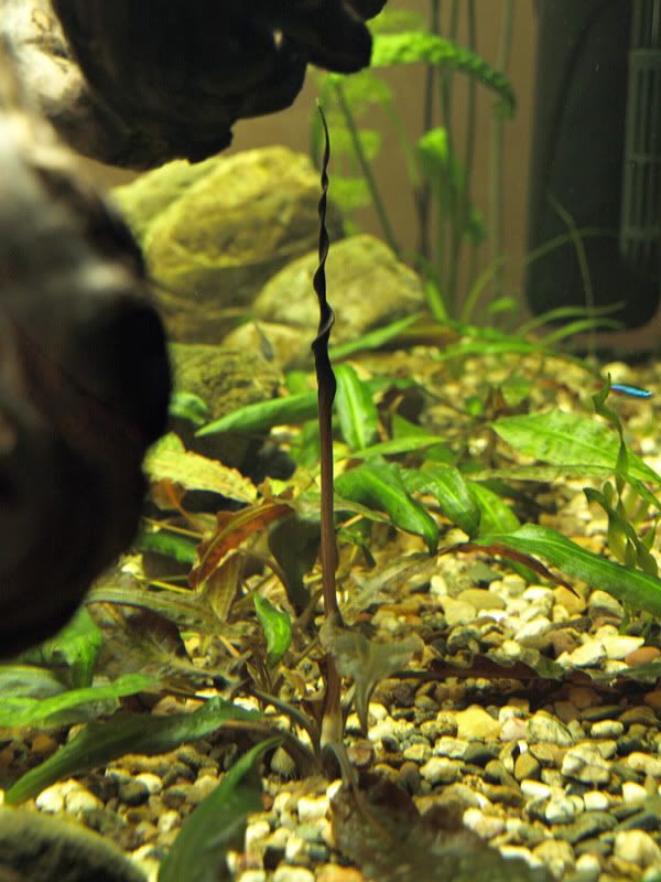 Здравейте. Някой знае ли какво е това, което пусна Криптокорината. Някаква спираловидна пръчка... Прилича малко на листо, което ще се разтвори, но пък ще е гигантско за нея :)