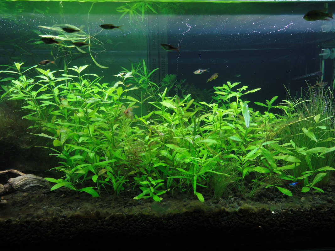 Имах едно бавно аквариумче,без ЦО2,слабо осветление,торях си доволно(седмично се добавяше по 2мг/л фосфат и 10-15мг/л нитрат и всичко си беше наред откъм алги.Само че му беше силен филтъра(1100л/ч канистър намален на половина на ~30л. вода) и слабо осветлението.
