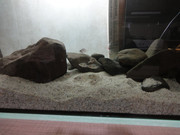 Другото, което много неприятно ме изненада е, как само една риба, превърна в кенеф цялата аква. Само акита се мяткат из водата. Това при положение, че не е много яшна, за има няма 1 седмица.  Да не говоря, че промени релефа на терена и на 1-2 места изкопа пясъка до фибрана.