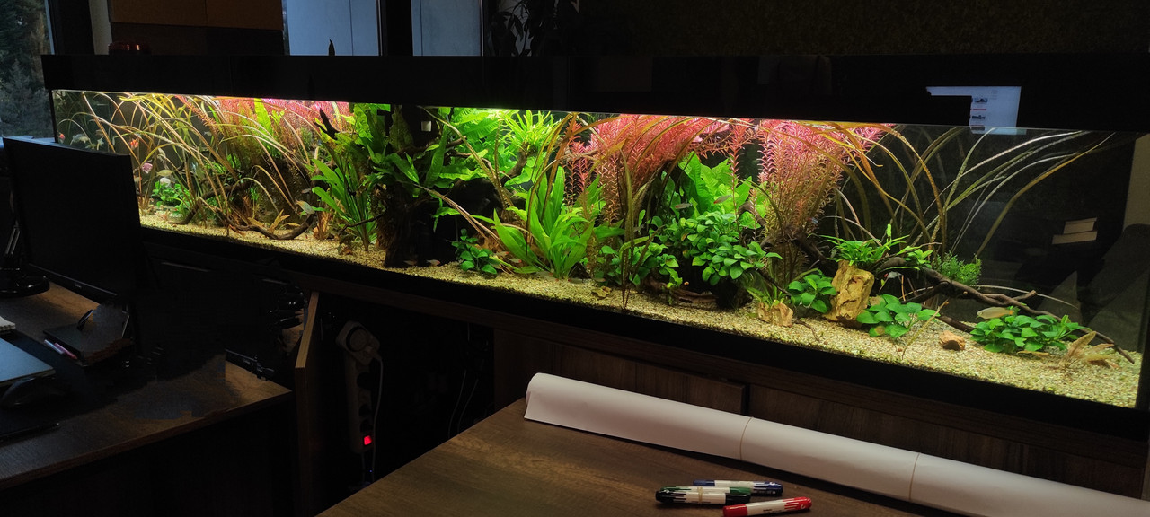 Китки растат , риби и те, лек набез на зелена брада има на места по грунда и някой друг корен , но ги "лекувам".Мисля ,че филтрите на тоя етап се справят добре с филтрацията.
