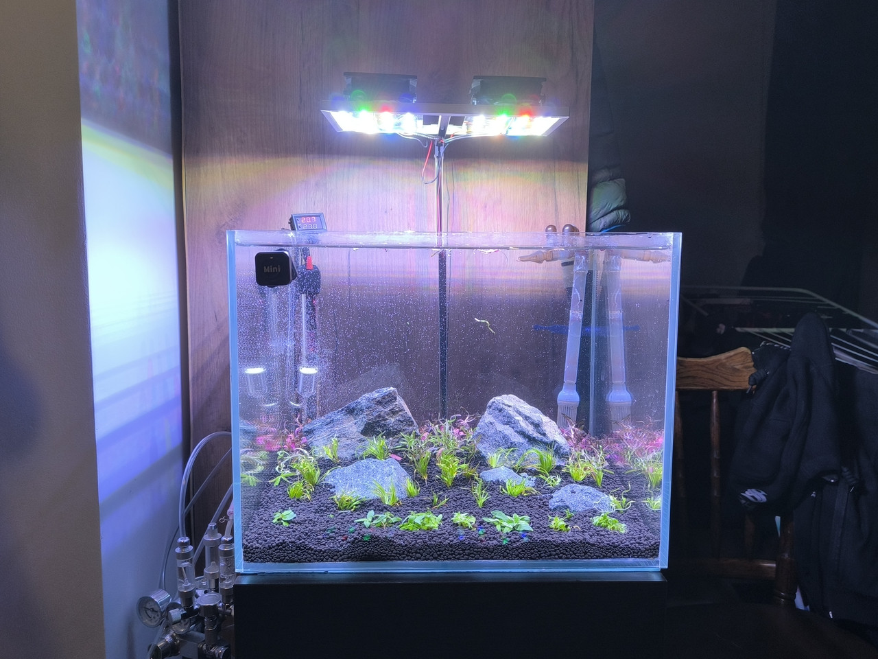 Направих тъй-наречения Черен старт- на 23.12.25 сложих камъните и грунда с филтъра и така аквариума стоя до 26.02.26 чудейки се какви китки да избера ..