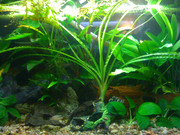 Растения: Valisneria spiralis torta, Anubias nana,  Anubias afzellii Schott, Echinodorus uruguainensis,Anubias barteri var, Ceratopteris thalictroides, Crinum natans Baker.