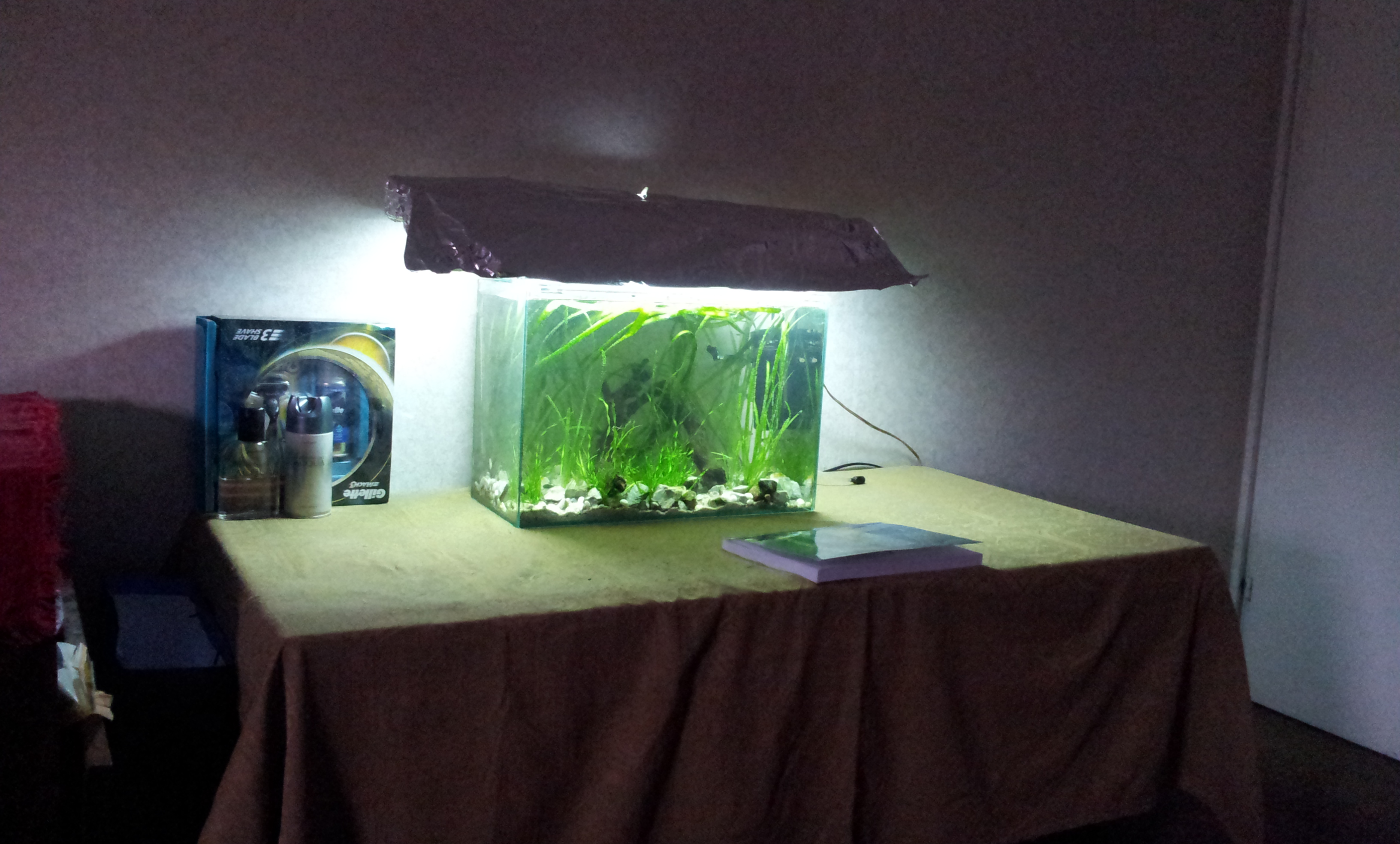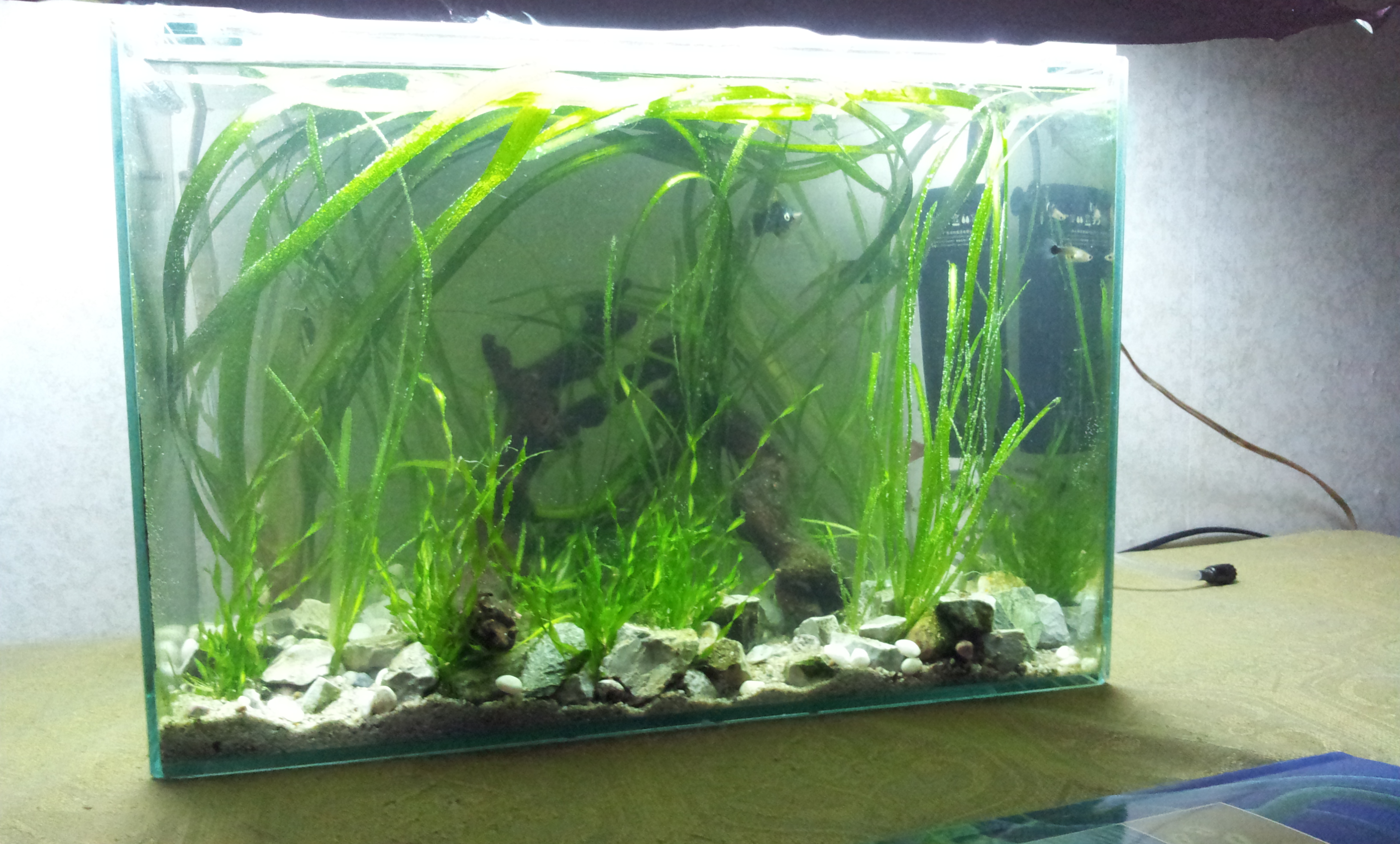 Здравей! Харесва ми аквариумът ти, но грунда ми се струва малко. Иначе с един син фон мисля, че ще изглежда още по-добре.
