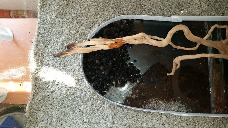 Този корен беше пробен да видя как ще седи. След лавата сложих малко Тетра Субстрат , да ви кажа честно това ми изглеждаше като чист пясък,но както и да е. Сложих към 2 кг и над него запонах да слагам манадото: