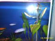 Риби: 9 бр. африкански цихлиди(7 от Малави и 2 юлидохромиса),