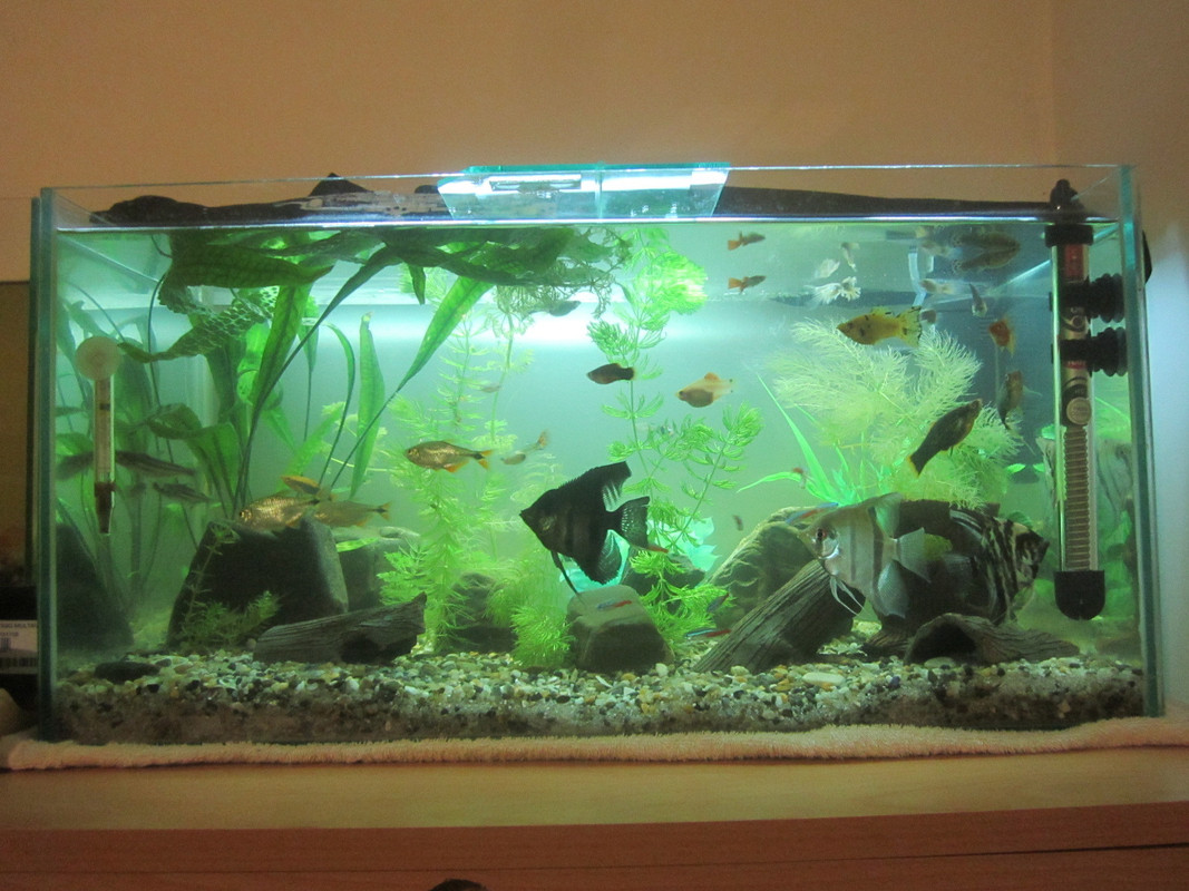 Здрасти, като цяло аквариумчето ми допада, но наистина мъничко си го пренаселил, вземи си още 1-2 аквариума и сложи живородките там и още няколко други вида в другия! Ако не ти се купуват аквариуми изкопай си едно езерце пред блока, съседите много ще се радват! :lol: