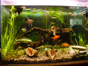 Знам за рапаните, но така ми харесва - 70л, хелери, гупи, плати, скаларии, розово и тигрово данио, неонки, анцитруси и още една ама и забравих името  :-D, нали съм си новичък... :-|