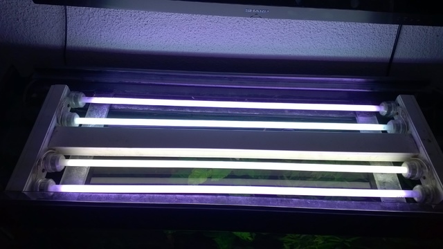 И моя е 120см по външен контур,10мм стъкло,ама съм с 54в т5.Други са фасунгите.Е,така или иначе вече си го направил,ама да го имаш предвид за в бъдеще ако сменяш капака.А и видовете растения по краищата да не са от най-светлолюбивите. Ако пък можеш-да ги преместиш лампите шахматно по в краищата да са.Да кажем първата най-вдясно,втората най в ляво,третата в дясно,4-тата в ляво и ще е по-добре.