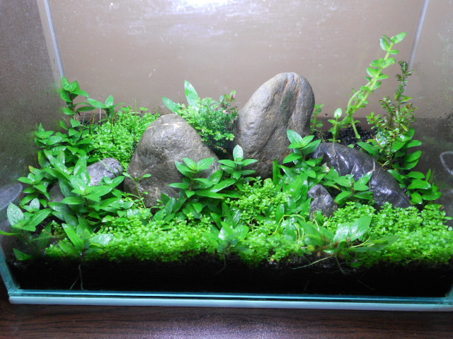 При тази подредба ще създадеш илюзия че е по широк аквариум.