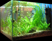 Аквариума е 100 литров на около 6 месеца. Криптокорините в момента се възстановяват и се надявам отново да прикрият филтъра и СО системата. А така изглеждаше в началото.