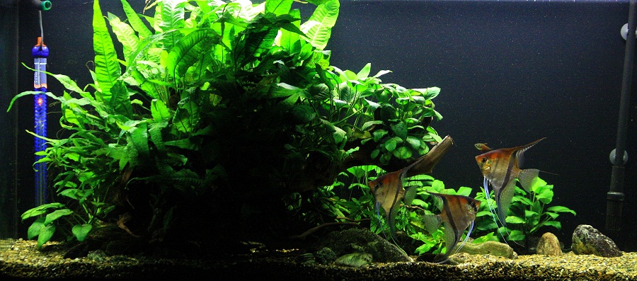 И на мен си ми харесва така а и не е мисля че е слабо всички растения имат повече от приличен растеж. Анубиаса беше един когато стартирах и после добавих още един а сега са 5 с повече от 10 листя всеки. Микрозорума пуска дъщерни растения всеки месец а сагитарията бяха 7-8 коренчета като ги засадих сега са над 40. Няма CO2 добавям само по 15ml течна тор на седмица и това е. За съжаление едното Манакапуро се спомина поради болест и 2-3 расбори дадоха и те фира дали заради скаларите или от старост не разбрах, но в общи линии всичко върви напред и нагоре.  8-)