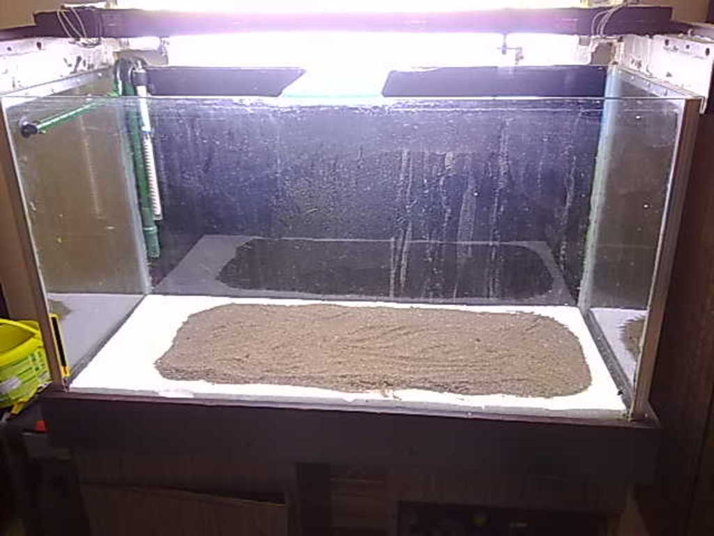 на дъното сложих 3 см стиропор с цел да повдигна малко самия грунд че 60 см ми идва в повече , осветлението са ми 6 х 39 вата т5 , но нямам рефлектори и затова намалих малко водния стълб