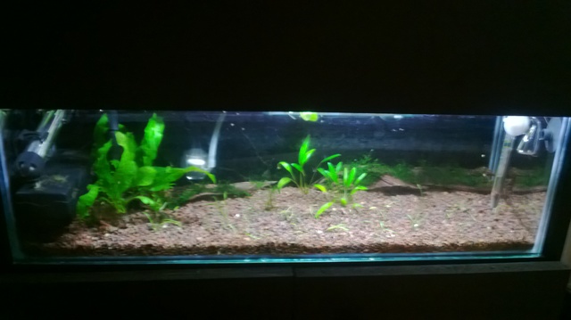 днес основно пренаредих аквариума , доста от растенията са махнати все едно току що стартирах аквариума  :-D , за съжаление телефона толкова си може , а и това е една от причините да не правя профил на аквариума , но ми писна да се конта за свестен апарат , засега със сапунерката  :-[ , понеже ми се развали фолиото на задното стъкло гледката е ужасна , замислил съм да пускам полека валиснерията изцяло до края докато не обхаване целия гръб на аквариума , оскубах криптокорините днес и съм оставил само няколко коренчета , предполагам че за около месец ще стане добре че те при мен вървят доста буйно за разлика от другите растения, идеята да слагам пред валиснерията криптокорини, но ще видим може и други да сложа каквото дойде на ум , до сега незнам защо дремах толкова време да не развия аквариума  *SORRY* ама полека лека ще стане
