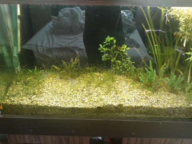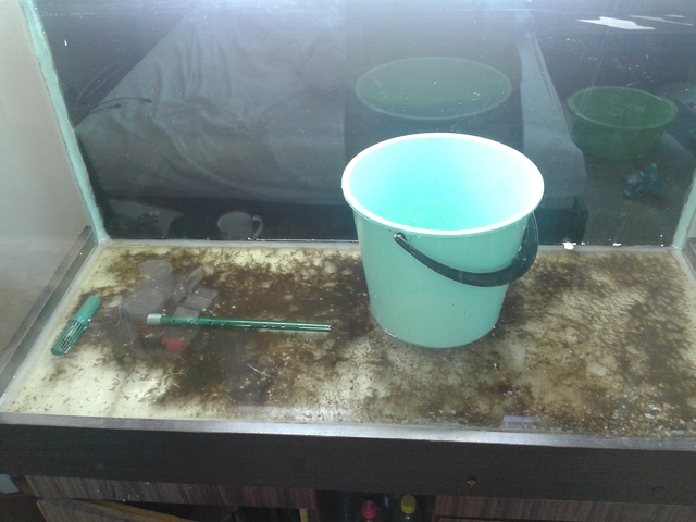 Такааа здравейте , от много време не съм обновявал или качвал снимки на аквариума си , НО днес рестартирам аквариума защото цяло лято ме нямаше и никой не се е грижил за него ... :-!  всичко е загинало скапало и почти загубих около 10 хубави Л-а , аквариума е поддържал температура около 32-4 градуса в жегите (нямало е кой да пусне охлаждането ) цо2 не е подавано , смени на вода никакви , органика бол .... резултата е на лице рестарт