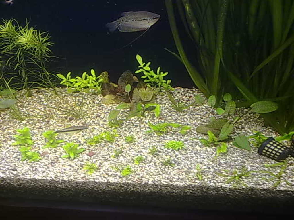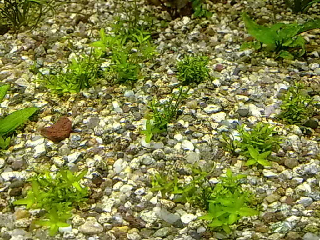засадих и тази китка , преди седмица мисля че Micranthemum micranthemoides ,но не съм сигурен ,окастрих го и взе че почна да се плъзга като килим отпред , ама е още рано за седмица не е тръгнало ,  но гледам издънки по камъните настрани пълзи  *dontknow*