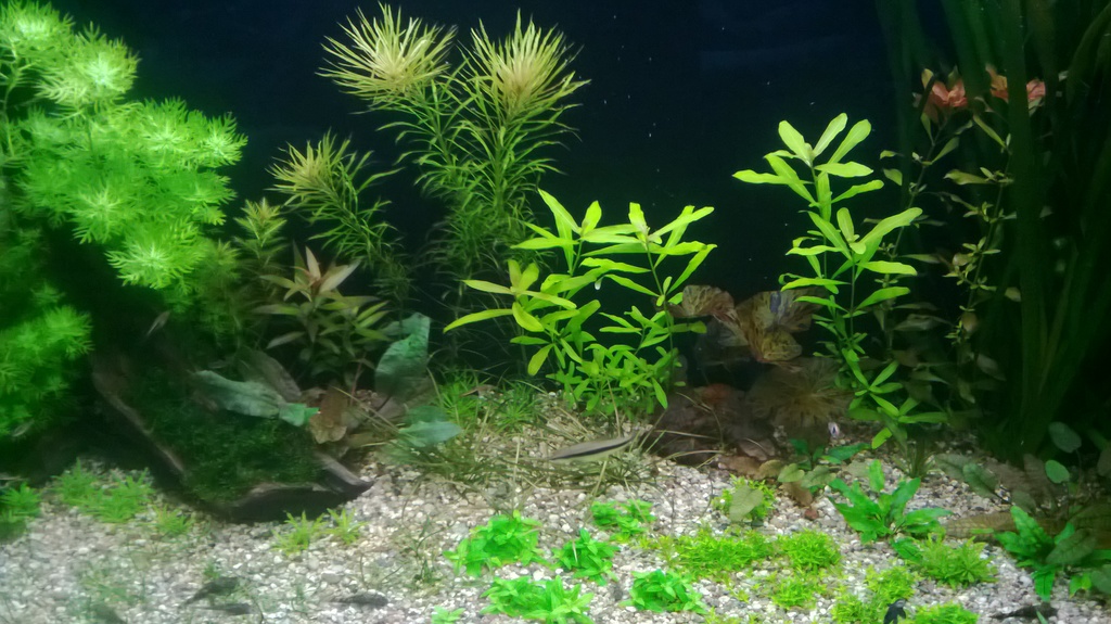 Лора права си за телефоните , ама все нямам под ръка качествен апарат , а пък когато имам не съм вкъщи , искам и аз да се сгъсти и да видя какво ще се получи , гледам лилеопсиса почна да сгъстява бавно но е тръгнал , криптокорините уенди окапаха от смяната на водата , хотонията расте като луда , мисля да я окастря малко ( оформя ) , две растения имам в аквариума на които не им знам имената , но ми харесват много , коледния мъх 2-3 -ти го омотавам към дънера и все тъкмо почне да се развива , но имам 2 саета по 10 см все го дърпат , имам малко глосо което почна да се сгърстява , стабилно мисля че до месец ще имам много гъста полянка , за погостемона не знам какво да кажа , но като го взех беше доста хубав ама дребен , разхвърлих го в различни части на аквариума да видя къде ще му допадне най-добре , един ден си направих експеримент и намалих дозата торове и започна да закъсва , мисля че цо2 не му трябва толкова както подхраване в корените + торовете + силна светлина , при мен е от около 2 седмици , когато го взех беше около 2 на 2 см всяко растение че и по малки имаше около 10 бр , сега са около 5 на 5 см и то само за 2 седмици , не знам как расте бавно или бързо не съм го гледал преди но мисля че се развива доста сериозно , гледам да поддържам температура 24 градуса заради хотонията по препоръка на колега а и като се прочете за самото растение също си пише че не търпи повече от 24 градуса , не знам как им се отразяват надругите растения тези 24 градуса ама на погостемона му е екстра