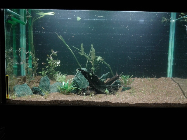 На този етап, гледай да сложиш още растения, че малко слабо ми се вижда залесяването. Да не те погнат водораслите, че имаш и хранителна подложка.