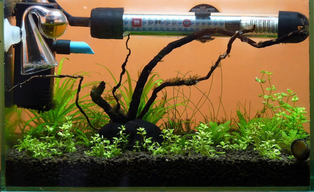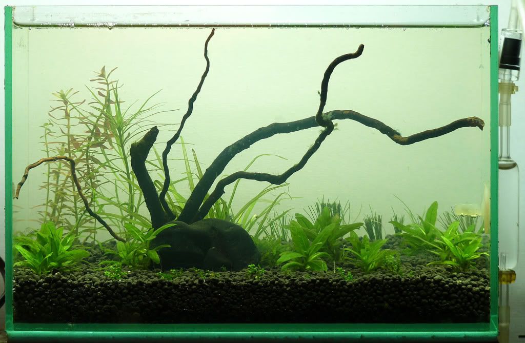 Прав си,че анубиаса идва едър.идеята беше това да е аквариум без цо2 и торове,а дребни треволяци за такива условия аз не намерих в момента на старта.