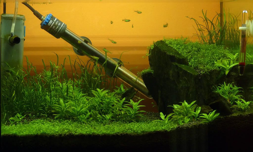 В 7 литровото стана невъзможно да се подържа температурата вече,затова го разбутах и искам да го направя "low tech"-единствената техника ще е камъче за аериране,което и да раздвижва водата по малко.Без ЦО2,без торене.За него именно си търся анубиасче,микрозориумче и мъх.Смятам и  стауроджин да пробвам на по- слабо осветление  :-)