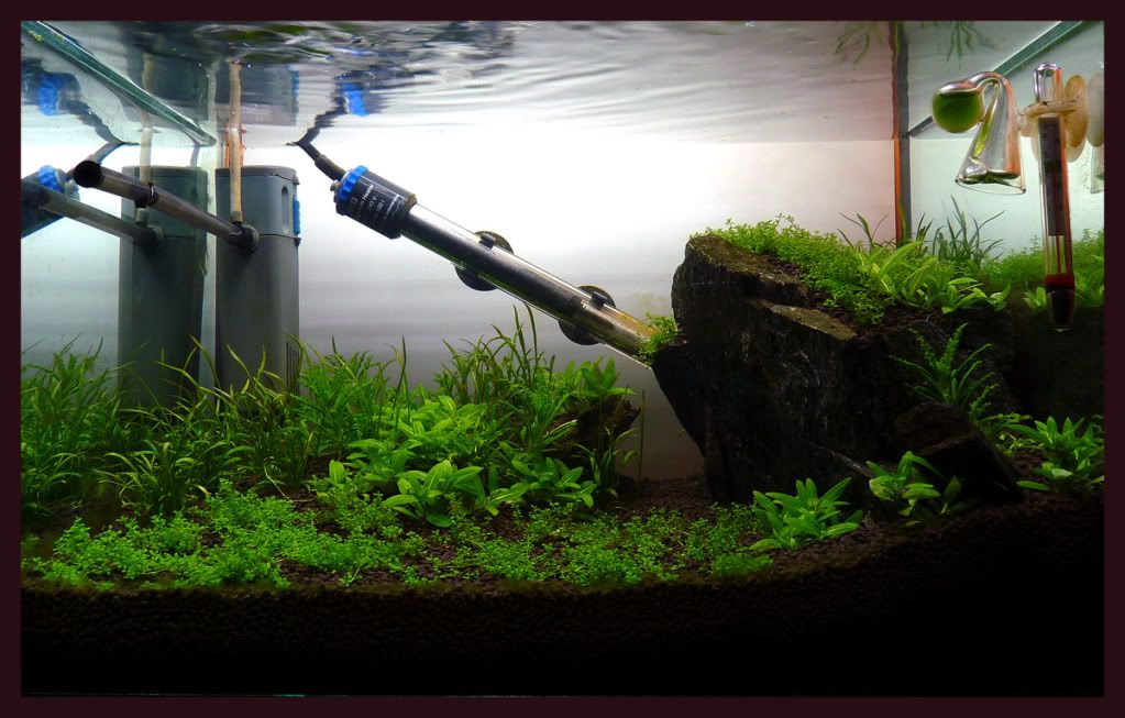 Разтварям ЦО-то с филтъра,че не ми се слагаше още допълнителна техника-и без това аквариума не е голям.Не е толкова ефективно-сравнено с 240 литровия подавам 3 пъти по-малко газ на 6 пъти по-малък обем.Т.е. -два пъти по-неефективно,но наваксвам с количество  :-D