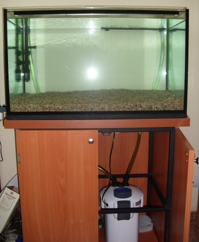 Грунд: кварцов пясък 3-5 мм. дебелина 4-6 см. Имах голям проблем да го измия беше много много мръсен. Взех го от "Кварцови Пясъци София"