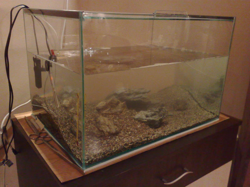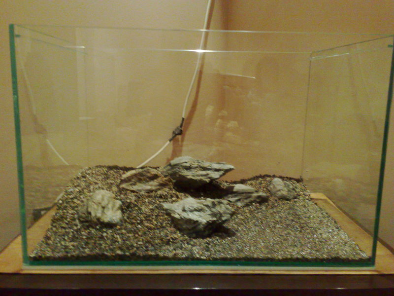 Пристигна дълго замисления аквариум *YAHOO* 75литрово от които ще останат може би 60литра чисто вода. Зареждането ще е по всяка вероятност във почивните дни. До тогава ще си избистрям идеи а може даже да експериментирам с грунд и камъни. Снимки по нататък сега само на празна аква.