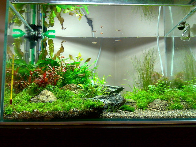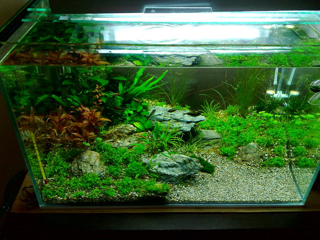Това е развитието на този аквариум в рамките на един месец. Със обикновени пури със речен пясък и малко профито, тук там и малко калиев нитрат.  *DRINK*
