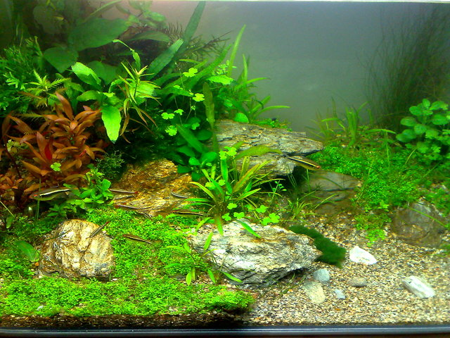 Това е развитието на този аквариум в рамките на един месец. Със обикновени пури със речен пясък и малко профито, тук там и малко калиев нитрат.  *DRINK*