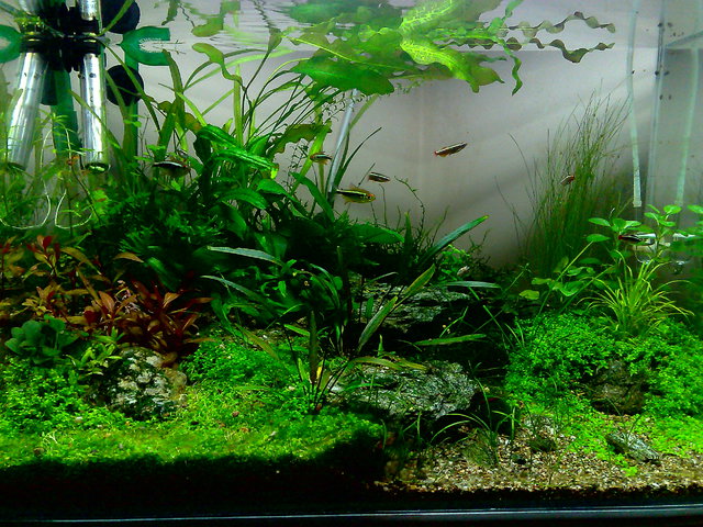 Че какво им е на рибите, мене много ме радват особено кардиналите :) Днес тъкмо го ровех и пренареждах леко защото все нещо не ме кефи ама продължава да не ме кефи на мах. Бавен е и се движи бавно няма много за показване.