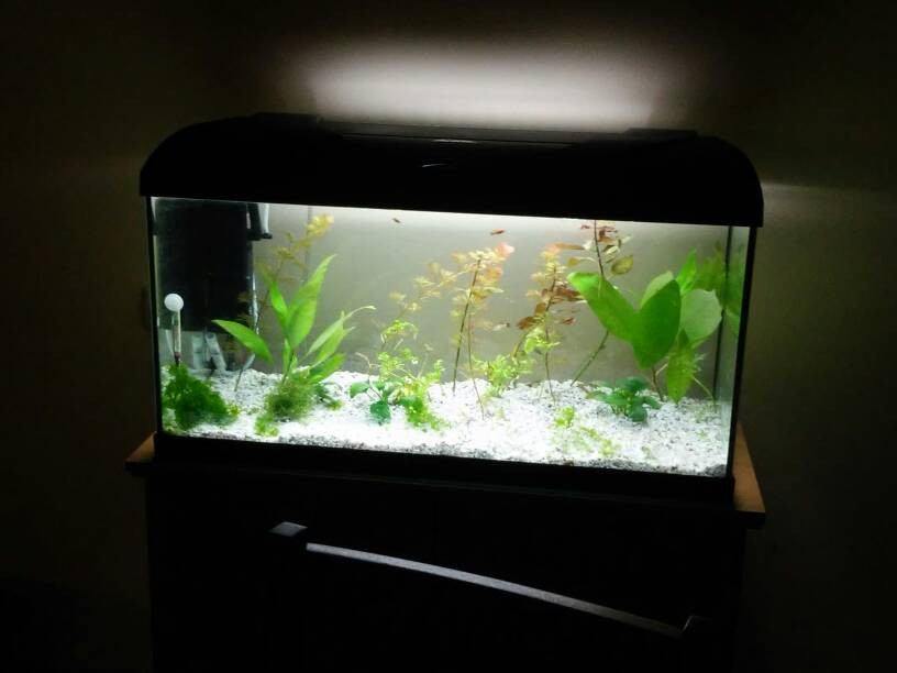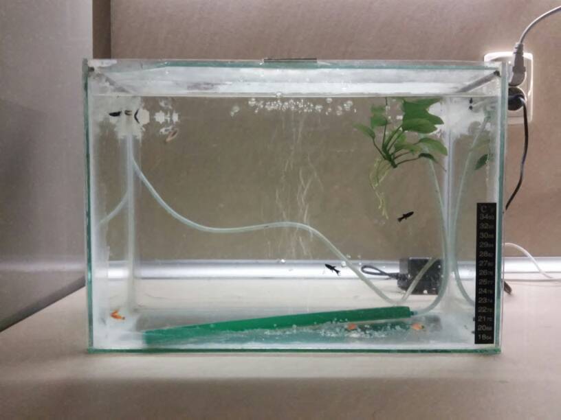 Не се вижда ясно на снимката. Направи фронтална снимка, малко по на долу от центъра на аквариума - нощем, да свети само аквариума - така няма да има отблясъци и ще се вижда всичко ясно.