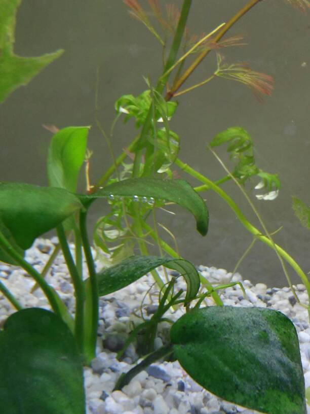 На снимката мисля, че виждам че си заровил анубиаси-те напълно. Това не се прави - ризома(стеблото) трябва да е на открито. Най добър ефект се постига, като се привържат към корен или нещо друго.