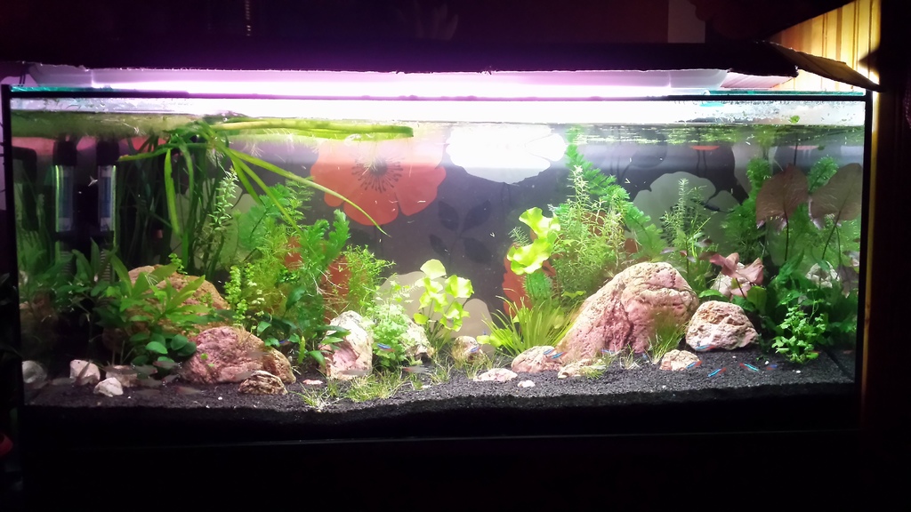 много приятен аквариум! само този фон на макове не се вписва много добре :)