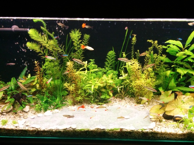Според вас колко риби трябва да махна, за да всичко бъде наред в аквариума. Растенията да си вървят както трябва без да почерняват и да имат водорасли.