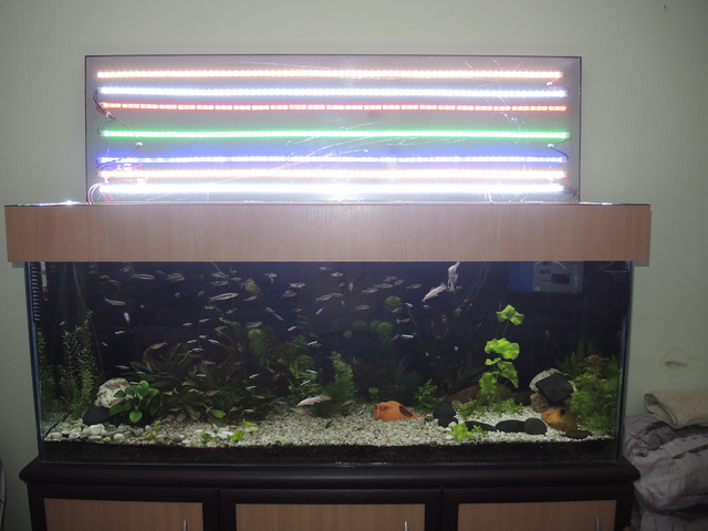 Но дойде период в който не ми се занимаваше. Изгоряха ми две от шините за лампите, но не ми се занимаваше да ги сменя. Лято, отпуски, море, аквариума ми беше на последно място  :-D. Растенията почнаха да се загубват. Но като всичко това свърши, както се казва дойде краската и отново съм в вихъра.  :-D Купих си нови растения. Нови рибки. Смених си цялото осветление с лед ленти, с помощта на един приятел.  *YAHOO*