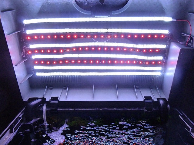 Белите са 40W/ метър, червените 10 W/ метър, а колко са се вързали на моя, не съм смятала. Правихме ги да изглежда добре, па ще видим растенията как ще се чувстват.