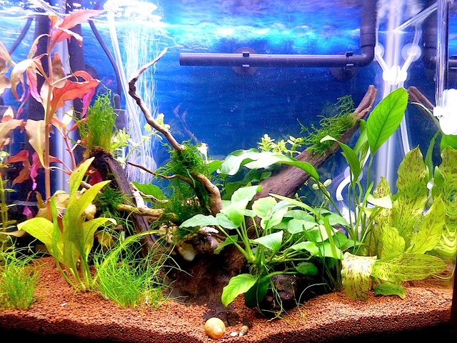 На мене също много ми харесва аквариума, направен е с желание и вкус просто си личи. Не ми е ясно само къде е СО2-то и с какво го разтваряш. Балоните които се виждат на задното стъкло вертикално нагоре от какво са? Помпичка за въздух или? Ако това е СО2-то то не трябва да излиза вертикално на горе а да прекарва повече време във водата с цел по добро разтваряне на газа. Също тъка ако пък е помпичка за въздух и клати много повърхността на водата също не е добре за СО2.