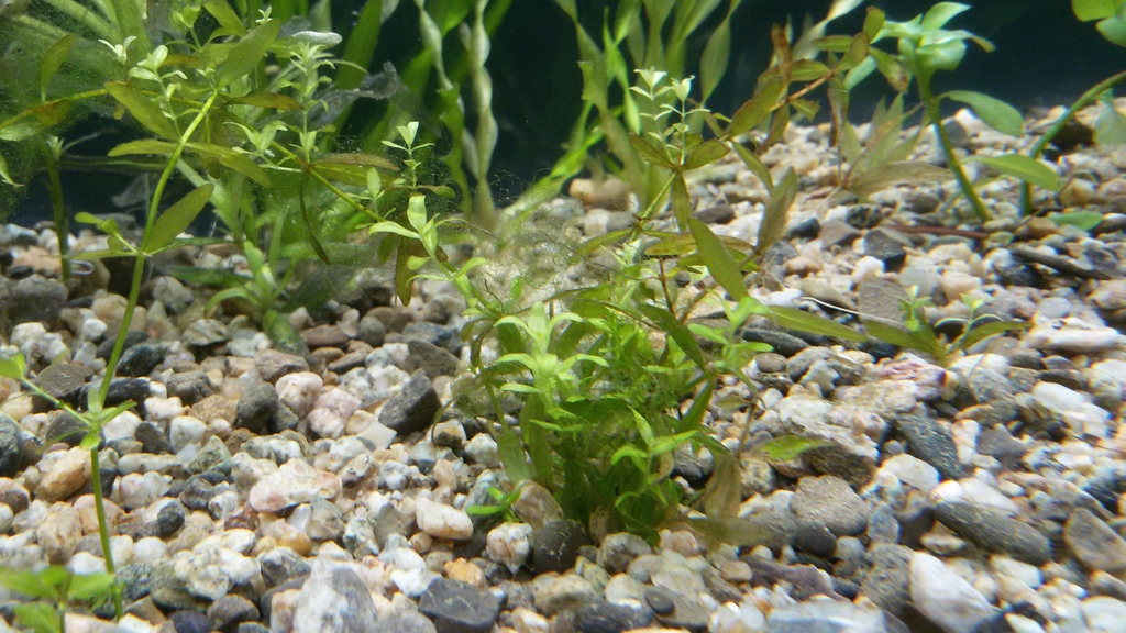 Не претендирам, че е красиво, или подредено, просто експериментирам, искам да подхвана и размножа тези растения и  след това да си помисля за някаква подредба. Дори за целта си купих още един 40 литров аквариум 40д/30ш/33в. Там реших да се пробвам с няколко слоен субстрат, който си е моя измишльотина, заради което и страдам де. Сложих 1см. речен пясък 2-4мм., смесен със 100гр. изварен и промит биохумус от червен калифорнийски червей. Отгоре сложих 3-4см. речен пясък. Направих отново капак от фибран, със 3бр. LED крушки на Е27, 6500К, 5W, 160' ъгъл на светене, 200lm. Там също светя от 15:00 до 22:00. А за страданията, имам вече брада, която си беше на едно от растенията от магазина и се появиха нишковидни. Понеже в този кавариум нямам риби, мисля да поекспериментирам със СО2. Температурата е 25'С.