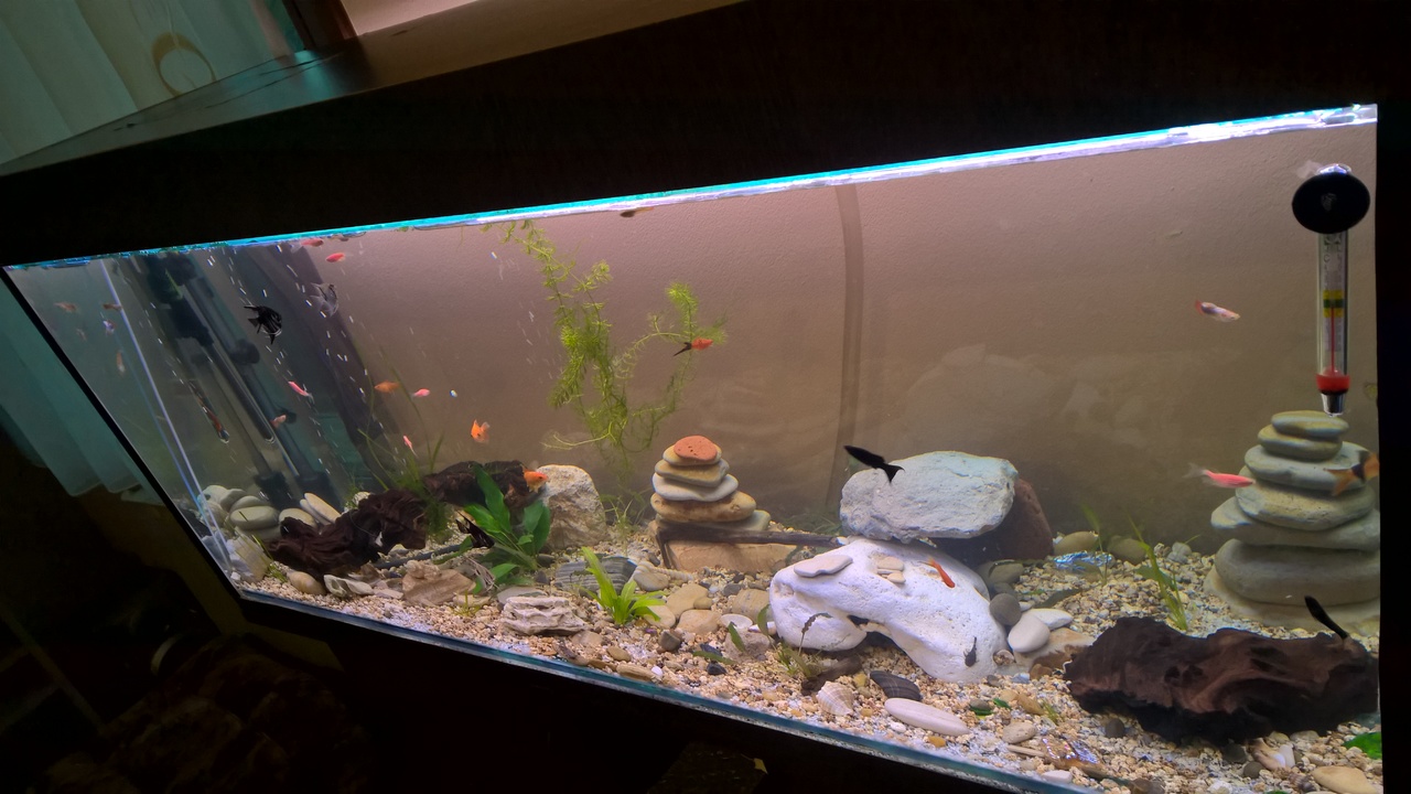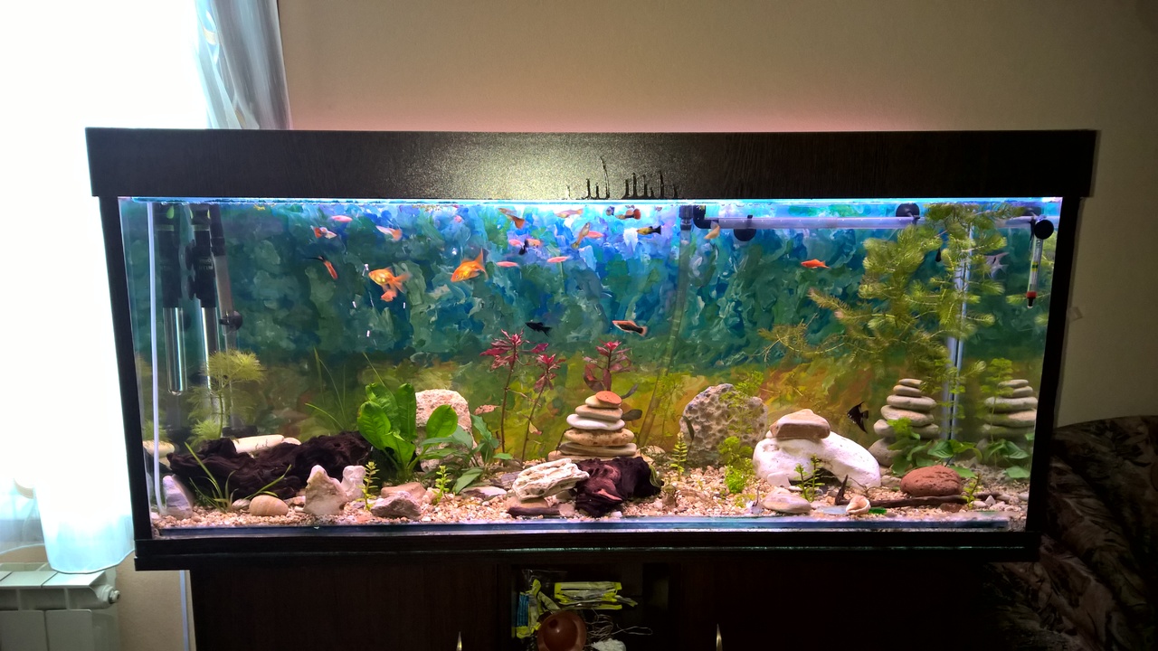 Здравейте,преди 2 месеца има няма ми влезе мухата за голямм аквариум и 1 ден се реших да поръчам стъкла при един познат които прави дограми,и така мислех,мислех и накрая реших 120/40/50-около 250л. и така след като ги чаках защото бяха рязяни на машина и шлаиф. реших да вляза да почета в нета за какво иде точно реч.. и се уплаших.имал съм 40 литров панорамен но бях мн малак, и знам че няма мн грижи,а ми дадаха 20 литров с гупи и 2 анцитроса и 2 сома.. и зех да чета какво е нужно и какви грижи се нуждае големият и се уплаших!