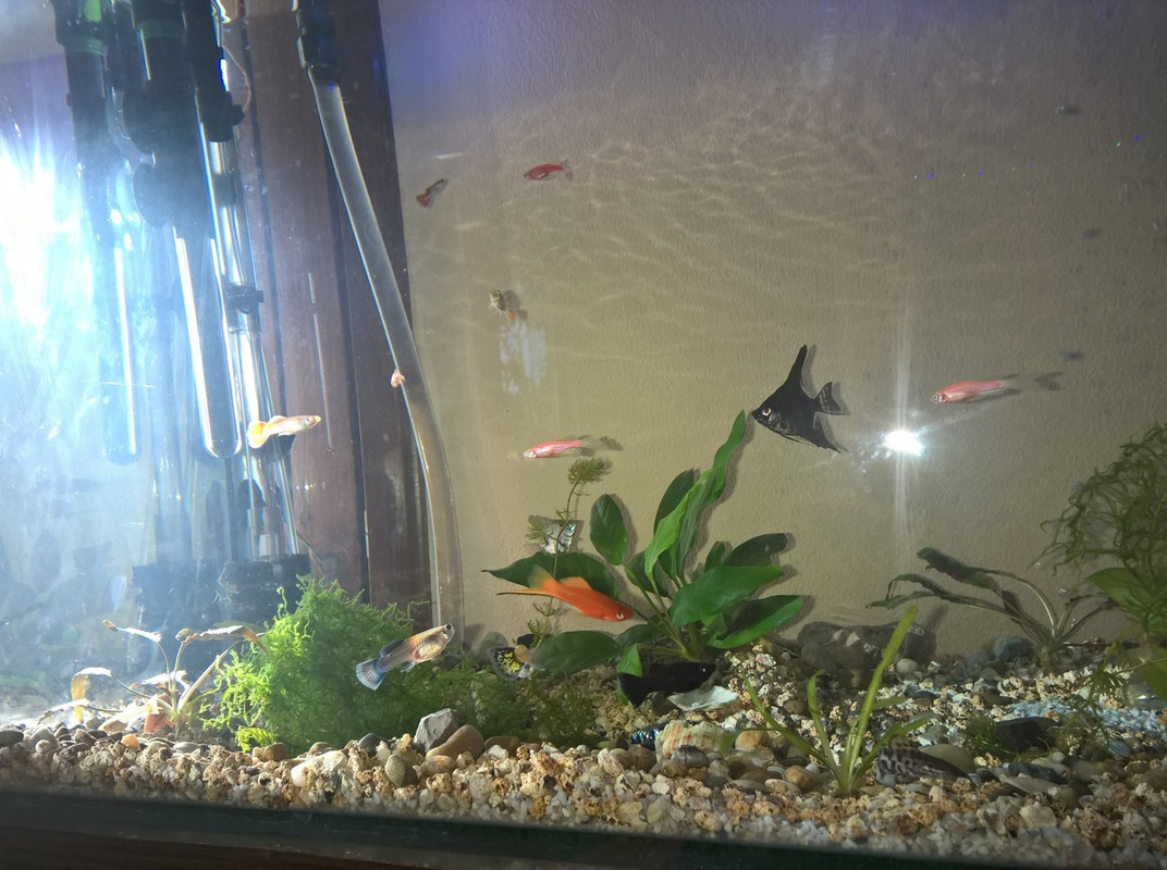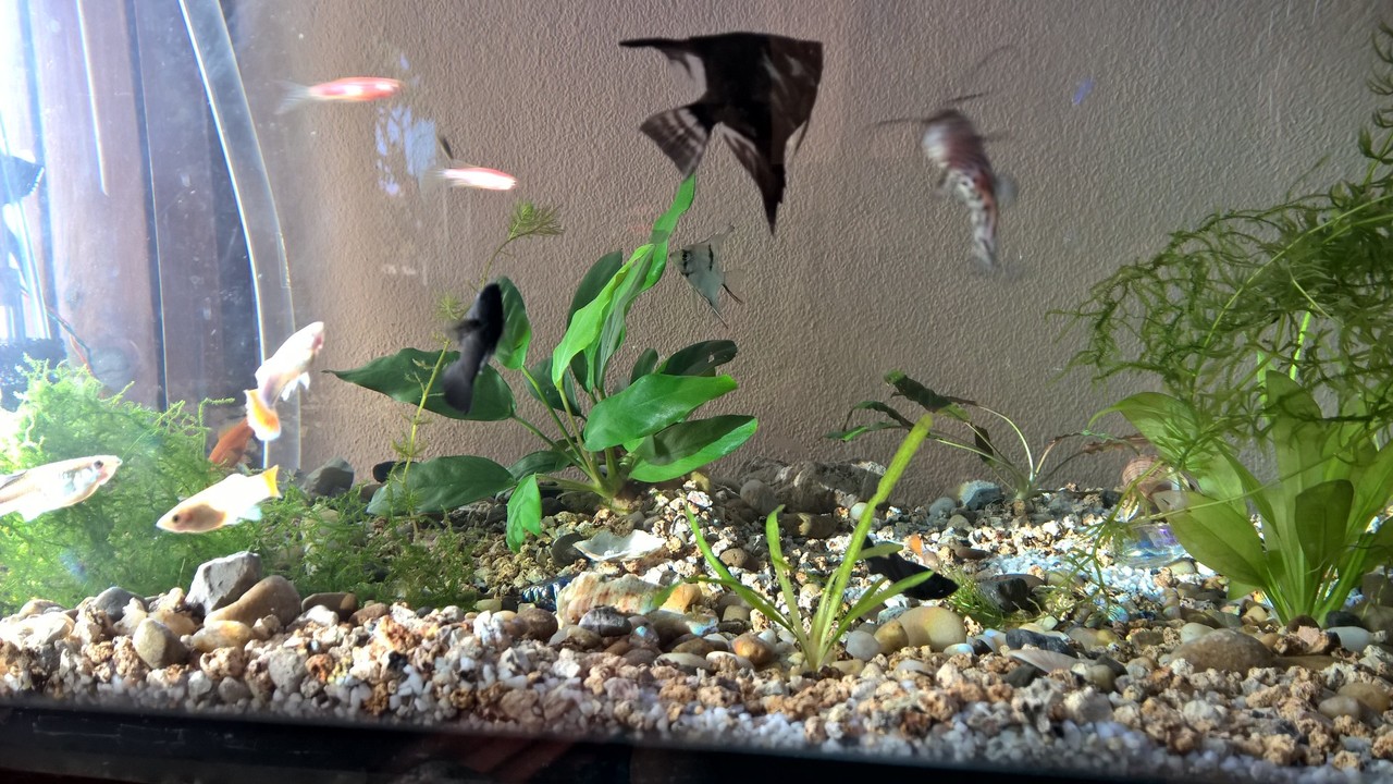 Мога да допълня от личен опит ако ще правиш рестарт , сложи си едноцветен фон черен или друг тъмен докато е празна аквата ,защото след време сам ще решиш че е по добре и при пълен аквариум е доста зор смяната на фона.