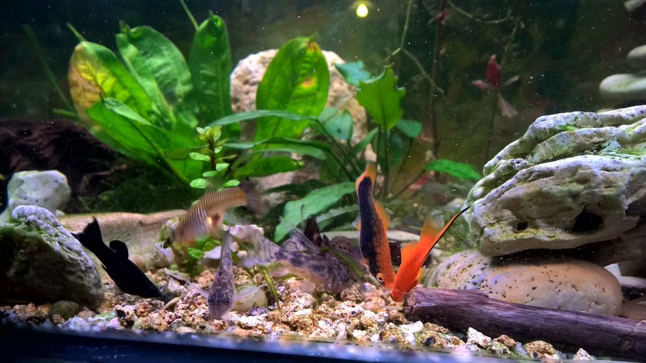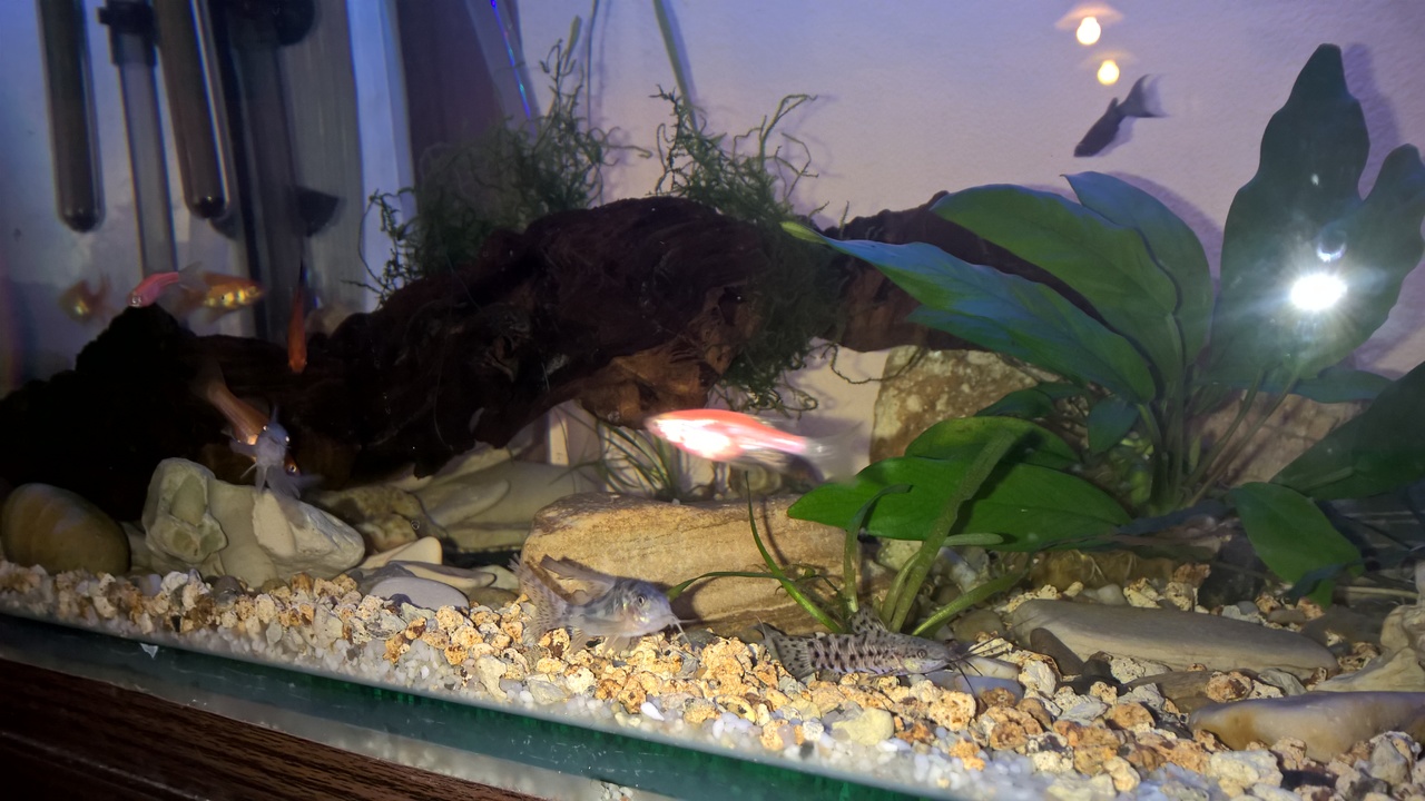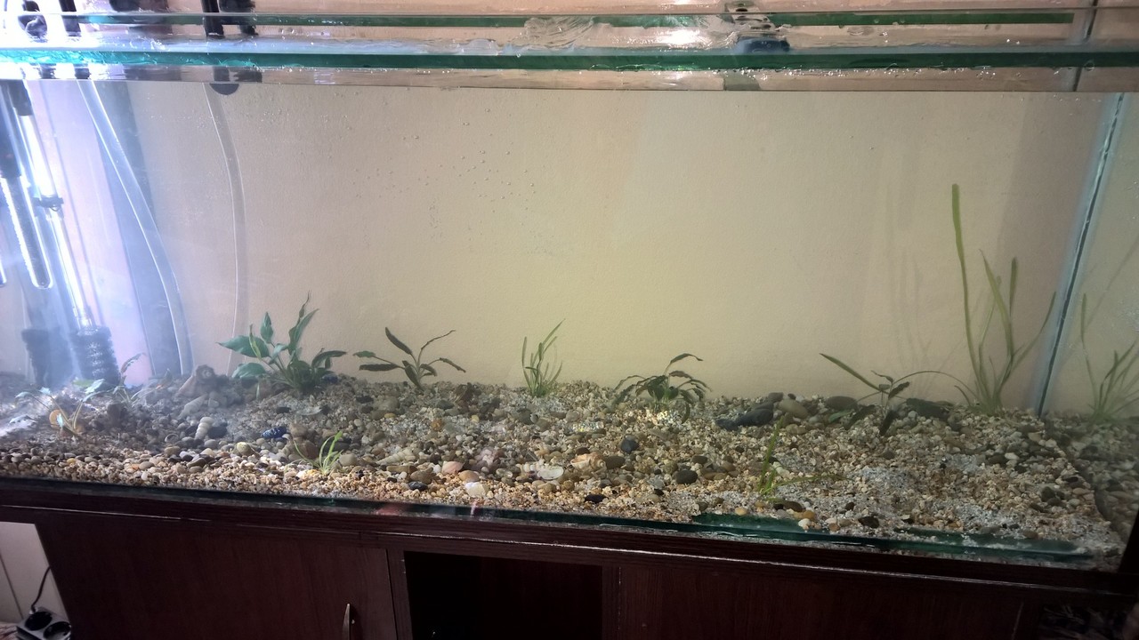 На първо четене от това което аз забелязъх проблеми с грунда ,много е едър , махни и всички мидички и рапани. Осветлението също е много слабо за растения .... Но нека и другите колеги си кажат мнението ! Успех със хобито