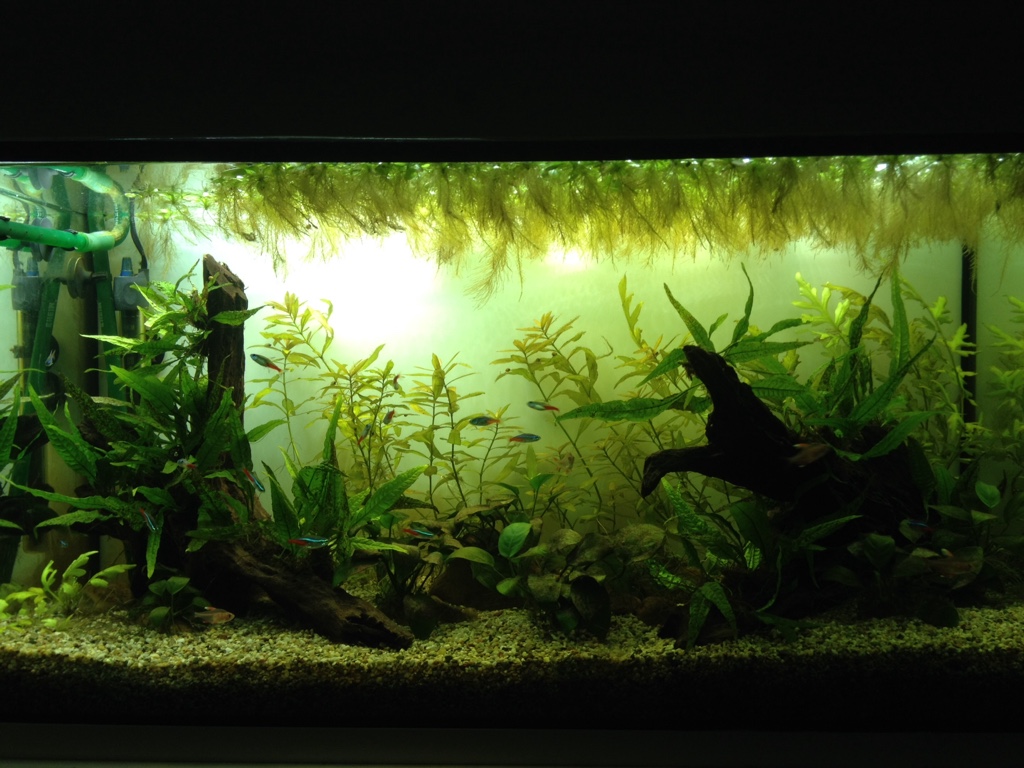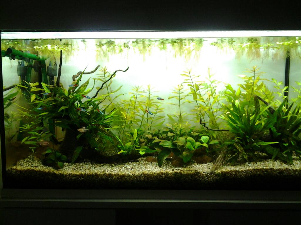 Като китайската капка и три години преговори със съпругата, стартирах мечтания и изстрадан аквариум. Благодарско на Giorgio_Armano за изработването, на JEM за корените, на svetlio3390 и wwladoo за растенията. Капака и шкафа са мое дело.