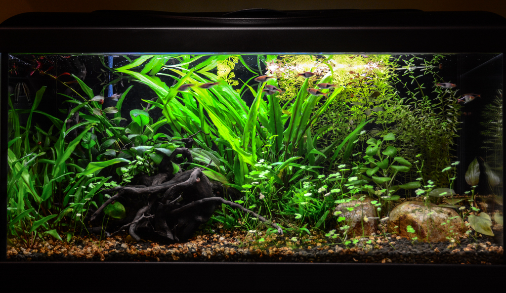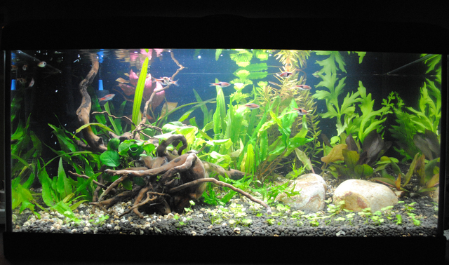 Мина половин година от стартирането на аквариума. Тук може да видите резултатите. Единственият ми проблем в момента е, че растенията растат високи, без много листна маса и са доста рехави. Предполагам, че това е заради слаба светлина. Някакви други мнения? Не подавам СО2, само глутаралдехит и течен тор.