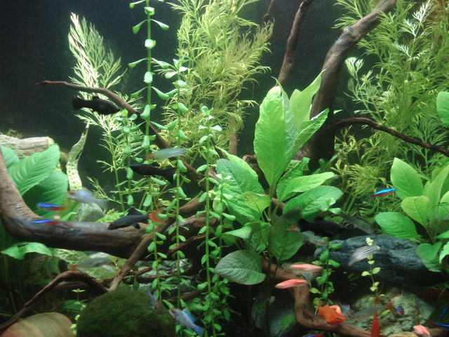Двете скаларийки има вероятност да започнат да се бия ти гонят още малко като поотрастнат. Мисля ,че ти малък обема за такива риби, но пък за сметка на това можеш да удвоиш бройката на останалите и като допълнение 2-3 анциструса или 6-8 коридораси пигмей ще изглеждат много добре.