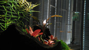 P.S. Ако не сте виждали Alternanthera Reineckii 'mini' как расте прикрепена към корен да видите  :-D Бяха твърде малки коренчета за да се заровят в грунда и ги защипах с малко парченце оловна тежест.