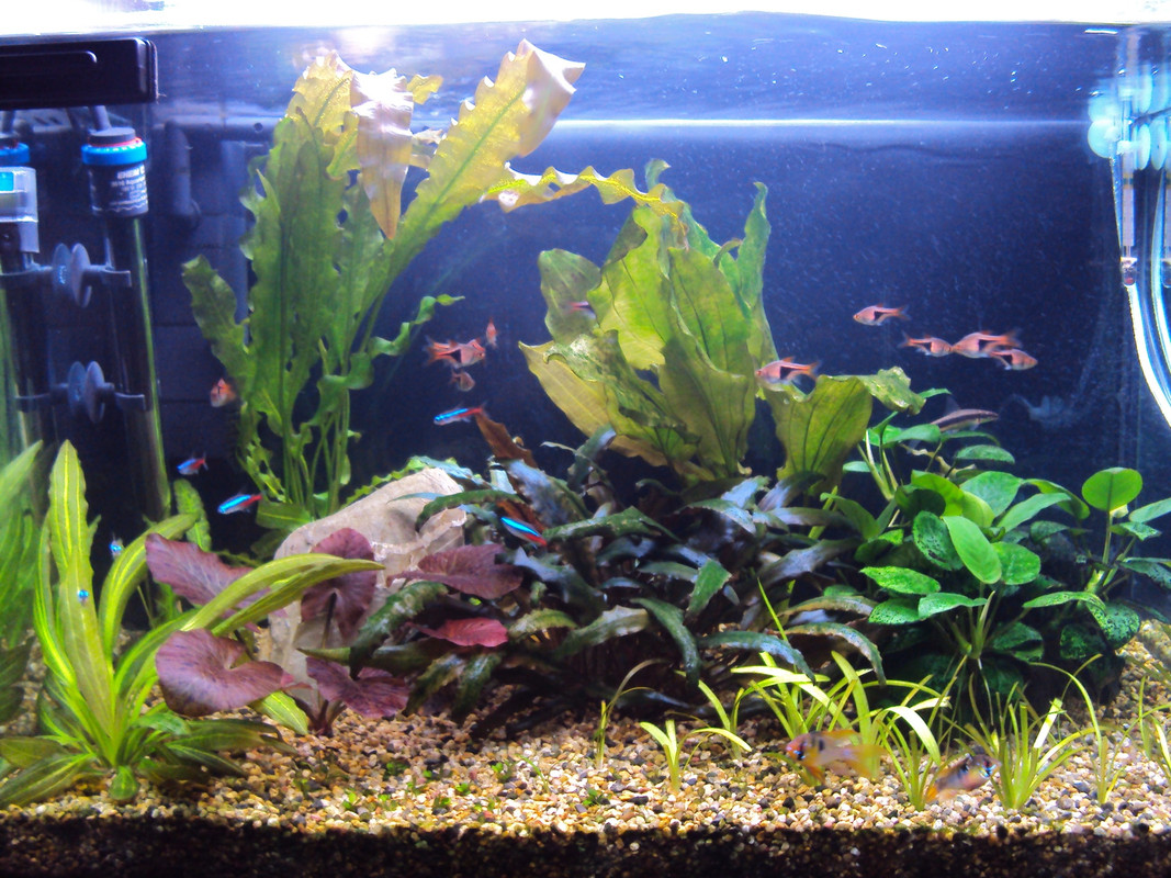 Ето го пак аквариумчето след малко разместване.Приемам всякакви мнения и препоръки.Поздрави.