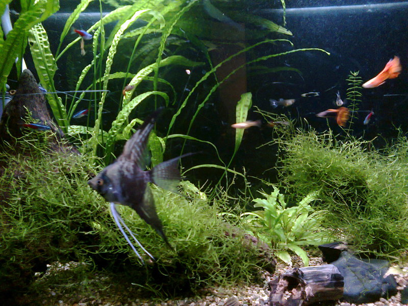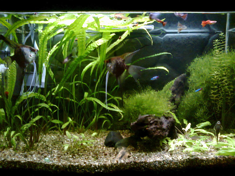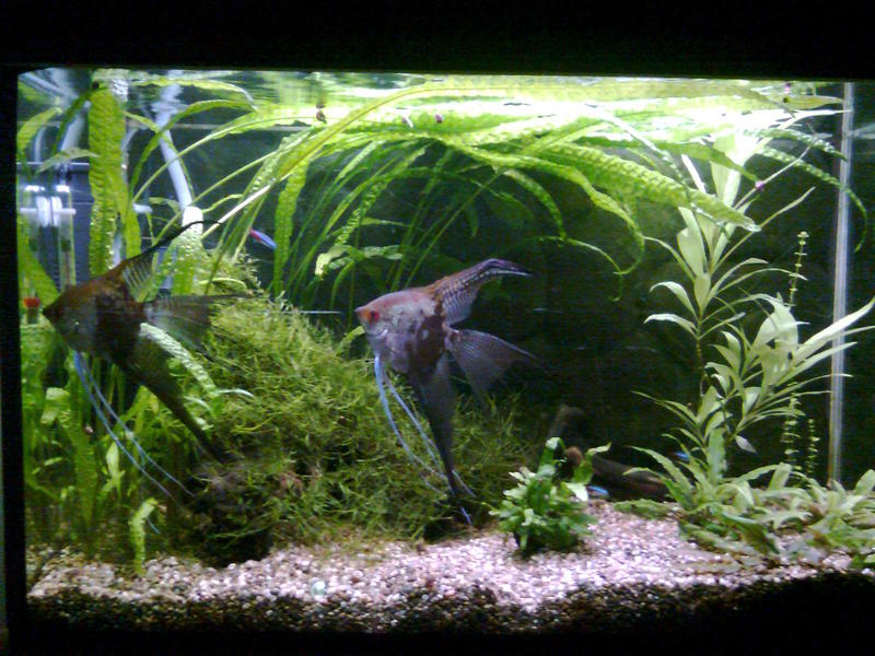 Скалариите са само две,а фонът е зад аквариума.Все още не им е тясно  *thanks